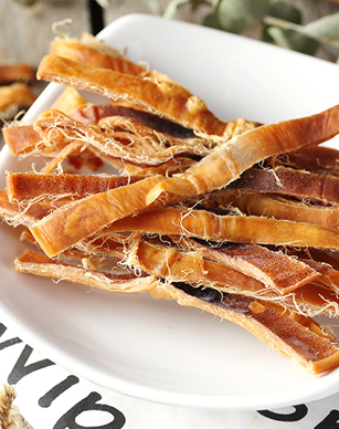 精選優質原料,經不同工序,制成生食、裹粉、素干、味干、煙熏等系列,肉質
